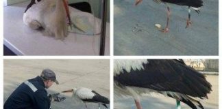 В Днепре раненный аист пришел к людям за помощью