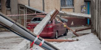 В Днепре столб и труба теплотрассы рухнули на автомобиль