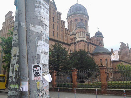 Наклейки с изображением Виктора Януковича с красной точкой на лбу, за которые недавно в Сумах приговорили активистов, появились в 20-ти городах Украины.
