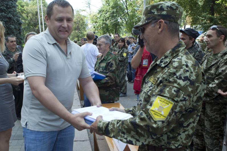 В этом раз наградили добровольцев, которые несли дежурство на границах Днепропетровска. Далее будут чествовать ребят, которые находились на блокпостах в Кривом Роге и Марганце.