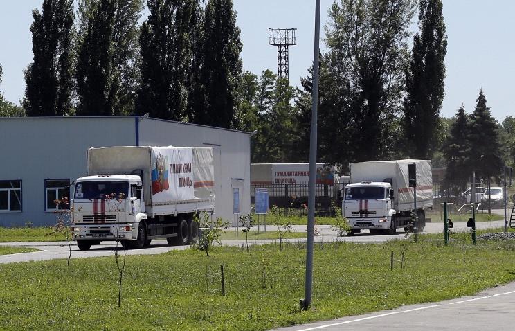Колонна с российским гуманитарным грузом начинает движение в направлении Луганска, сообщает МИД РФ.