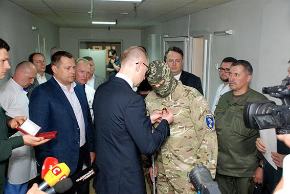 Кроме этого, Арсений Яценюк от имени Президента Украины вручил награду Орден Богдана Хмельницкого 3-й степени командиру батальона Донбасс, Семену Семенченко. В свою очередь Арсен Аваков вручил раненым бойцам Министерские награды.