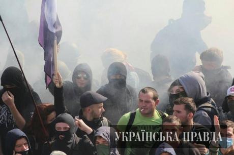 Сегодня под стенами Верховной Радой снова было горячо. Активисты под знаменами ‘Свободы’ и ‘Правого сектора’ требовали от парламентариев признания ОУН УПА воюющей стороной во Второй мировой войне. После того, как Рада не поддержала этот проект, в ход пошли дубинки и цепи.