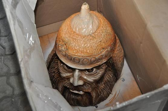 В ходе обыска в его доме обнаружили 20 кг пластида в виде головы богатыря с детонаторами внутри, пистолет ПМ и удостоверение сотрудника генеральной прокуратуры ДНР.