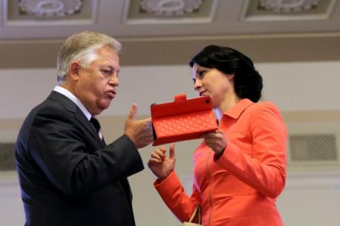 О.Калетник народный депутат Верховной Рады 7-го созыва от Коммунистической партии Украины, одна из первых вышла из состава фракции в мае этого года после того, как власти заявили о намерении запретить КПУ за сепаратизм в связи с событиями на востоке страны.