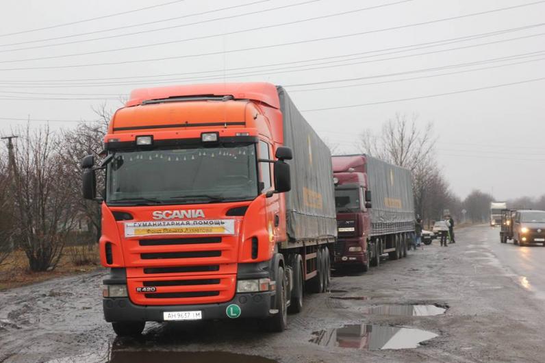 Ранее сообщалось, что гуманитарный рейс от благотворительного Фонда Рината Ахметова, выехавший из Днепропетровска в сторону Донецка, достиг первого блокпоста, расположенного на границе двух областей возле пос. Искра. Сообщается, что автомобили с грузом встретили 20 человек в камуфляже, один из которых представился комбатом добровольческого корпуса Правого сектора Черным.