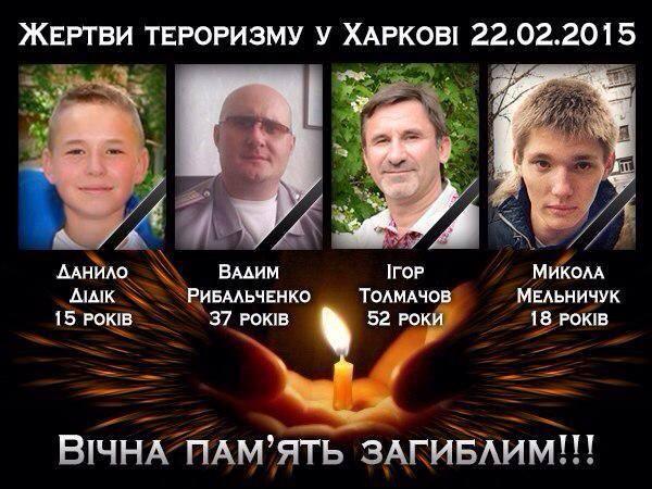 В результате проведения совместных антитеррористических мероприятий СБУ и МВД задержали преступников, причастных к теракту в Харькове 22 февраля, в результате которого погибло четверо граждан. Об этом сказал секретарь Совета национальной безопасности и обороны Украины Александр Турчинов в своем комментарии.
