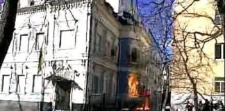Митингующие подожгли офис ПР на ул. Липской в Киеве
