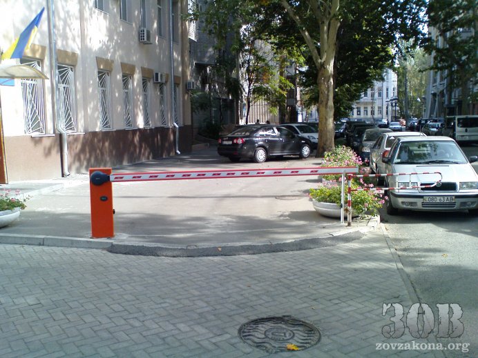 Исключением не стал и Департамент корпоративных прав и правового обеспечения Днепропетровской районной рады. Чиновники из этой организации не стали ущемлять себя в комфорте и сделали себе VIP-парковку на общественном тротуаре. Отгородили её от простых грешных людей цветочниками и импровизированным шлагбаумом. Для удобства заезда иномарок на бордюр из асфальта был сделан пандус, и сделан качественно, а не как на пр.Правды сделали заезд для инвалидов-колясочников в подземный переход. Чтобы обычные горожане не перекрывали въезд на тротуар для избранных, добавлен еще один мини-шлагбаум который служит ограничителем для тех, кто остановился на дороге.