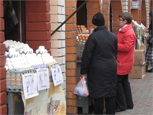 В днепропетровских супермаркетах цена держится еще приемлемая. В крупных торговых сетях лоток с десятком яиц стоит 6,99 гривны. Но постепенно, обещают оптовики, и тут цена повысится.