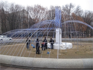 Днепропетровск начал готовиться к встрече Нового года. В сквере Ленина коммунальщики подвешивают на деревья гирлянды, столбы освещения уже покрыли электронными снежинками-гигантами. Но самые главные работы ведутся у фонтана, который электрики с помощью светодиодных конструкций превращают в зимний водопад. Сейчас конструкцию уже наряжают новогодними огоньками, а вчера даже включили, чтобы проверить, как работает система подсветки.