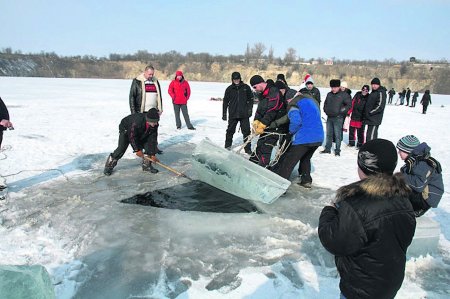 Четрые года назад, когда на глубине 33 метров любители подводного плавания нашли перевернутый автомобиль ВАЗ, они загорелись идеей создать подводный парк. Чтобы торжественно утопить мотоцикл, который нам подарил местный житель, съехалось около 50 дайверов из Днепра, Донецка и Одессы, рассказал Сегодня руководитель клуба Dir-daving Андрей Воробьев и добавил, что перед тем как опустить экспонат под воду, дайверы тщательно очищают его от моторных масел, бензина, тормозной жидкости, чтобы не загрязнять водоем. В затоплении трехсоткилограммового железного коня непосредственно участвовали девять дайверов.
