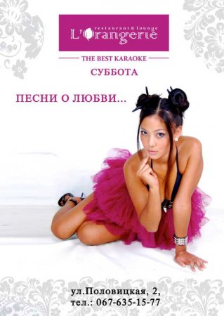 Афіша Каждую субботу, караоке в L’Orangerie By Татьяна Иванова - 25.07.2011 00:00 0 15 Поділитися FacebookViberTelegramTwitterWhatsAppPinterestPrintEmail Каждую субботу, L’Orangerie The best karaoke ‘Песни о любви…’ Каждую субботу, начало в 20:00 ул. Половицкая, 2 тел: 067-635-15-77