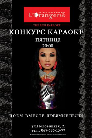 Афіша Каждую пятницу, конкурс караоке в L’Orangerie By Татьяна Иванова - 25.07.2011 00:00 0 15 Поділитися FacebookViberTelegramTwitterWhatsAppPinterestPrintEmail Каждую пятницу, L’Orangerie Конкурс караоке Каждую пятницу, начало 20:00 Поем вместе любимые песни ул. Половицкая, 2 тел: 067-635-15-77