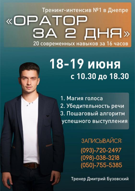 Регистрация на тренинг ‘Оратор за 2 дня’ 18-19 июня со скидкой 150грн:
