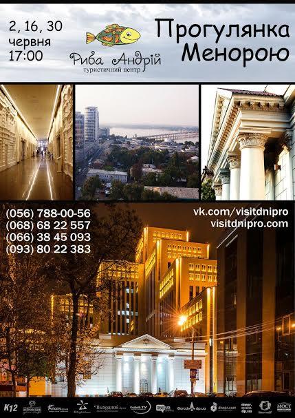 Во время экскурсии мы прогуляемся по галерее и услышим рассказ о фасадах старинного Екатеринослава, посетим зал торжеств Menorah Ballroom и Menorah Grand Hall, старинный особняк Дом Пчелкина и поднимемся на смотровую площадку 18 этажа, откуда открывается волшебный вид на наш любимый город!