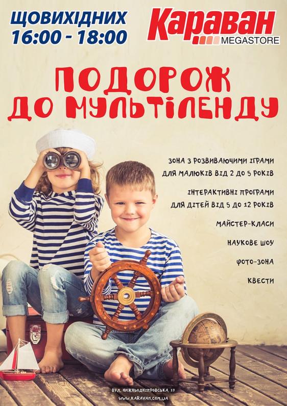 Каждые выходные, с 16:00 до 18:00, ТРЦ Караван приглашает девчонок и мальчишек, а также их родителей в увлекательное путешествие по Мультиленду.
