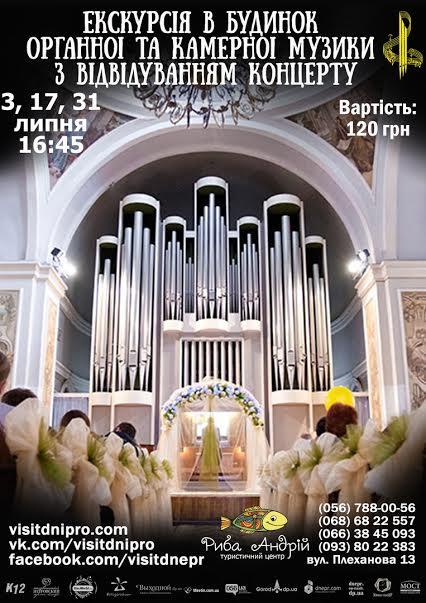 Є орган і в Дніпропетровську.Тож запрошуємо Вас на екскурсію до Будинку органної та камерної музики! Наш орган входить у десятку найкращих органів Європи.