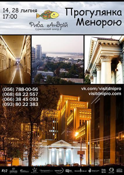 Во время экскурсии мы прогуляемся по галерее и услышим рассказ о фасадах старинного Екатеринослава, посетим зал торжеств Menorah Ballroom и Menorah Grand Hall, старинный особняк Дом Пчелкина и поднимемся на смотровую площадку 18 этажа, откуда открывается волшебный вид на наш любимый город!
