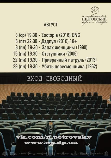 Выбирай кино на свой вкус, бронируй столик и приходи с друзьями наслаждаться любимым фильмом на большом экране и с хорошим стереозвуком!