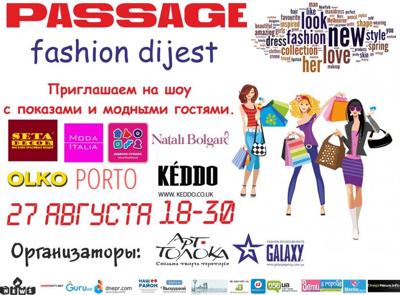 27 августа с 18.30 до 19.30 на площади возле ТЦ Passage состоится очередной PASSAGE Fashion Dijest от Galaxy Fashion School.