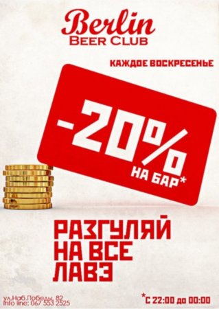 – 20 % на бар