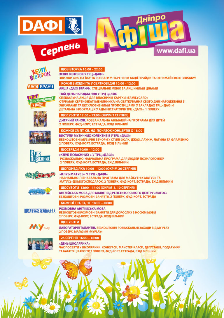 Афиша мероприятий на сентябрь ТРЦ Дафи
