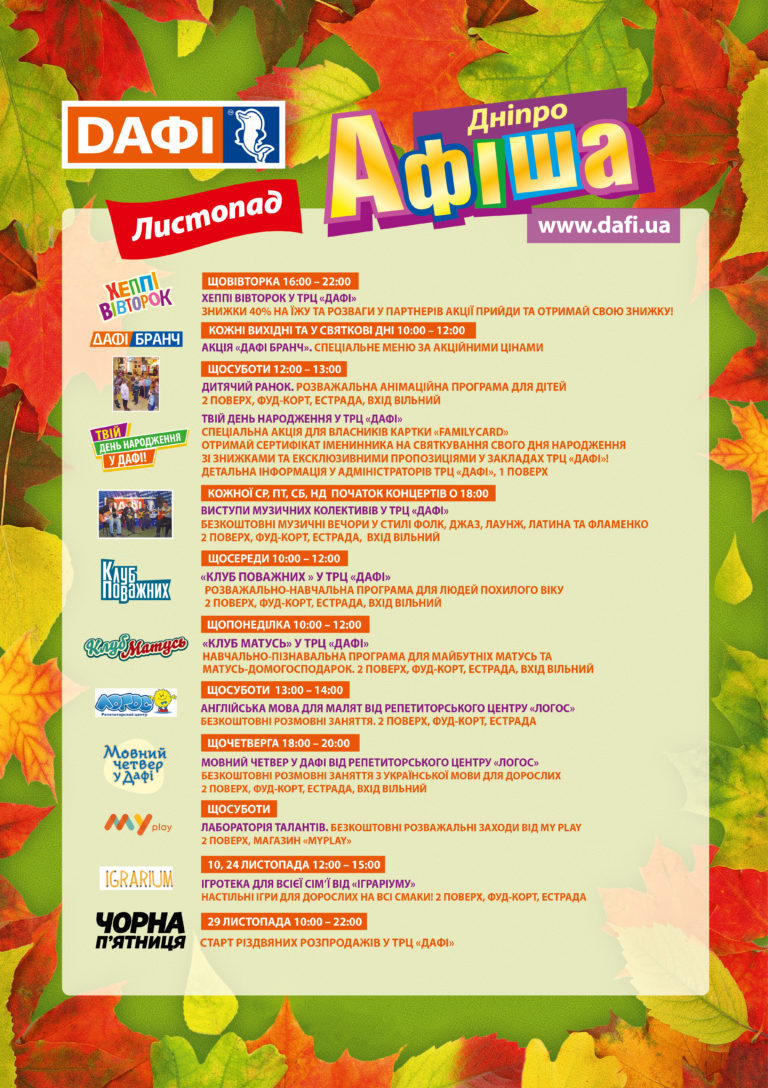 Афиша мероприятий на ноябрь ТРЦ Дафи