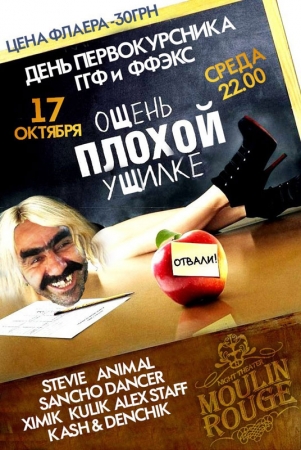 Події (Заходи) 17 октября, Ощень плохой ущилка By Татьяна Иванова - 16.10.2012 00:00 0 21 Поділитися FacebookViberTelegramTwitterWhatsAppPinterestPrintEmail День первокурсника ГГФ и ФФЭКС Dj Stevie Dj Ximik Dj Kash & Denchik Dj Sancho Dancer Dj Animal Dj Kulik Dj Alex Staff Мулен Руж: Концерт Холл Адрес: ул. Гопнер, 4-а , тел.: 067 176 75 75Начало: 22:00Вход: 30 грн.