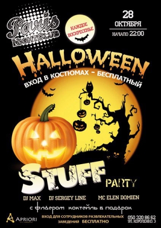 Halloween Stuff Party– это встреча друзей, сотрудников, коллег работающих в одной сфере, живущих в одном ритме, мыслящих одними и теми же категориями. Их задача на работе – сделать отдых гостей максимально комфортным. Задача организаторов вечеринки обеспечить такой же комфорт самим клубным работникам.