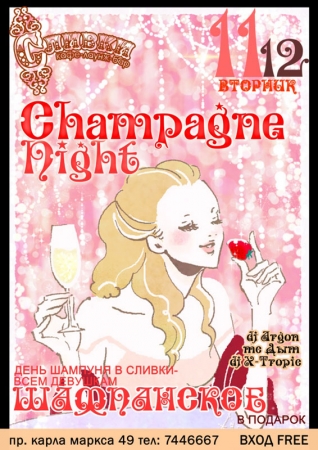 Події (Заходи) 11 декабря, Champagne Night By Татьяна Иванова - 10.12.2012 00:00 0 7 Поділитися FacebookViberTelegramTwitterWhatsAppPinterestPrintEmail День Шампуня в Сливки!Всем девушкам Шампанское в подарок! DJ Argon DJ X-Tropic MC Dым Сливки Адрес: просп. Карла Маркса, 49 , тел.: (050) 340-27-04, заказ столиков 744-66-67Начало: 22:00Вход свободный, dress code, face control.