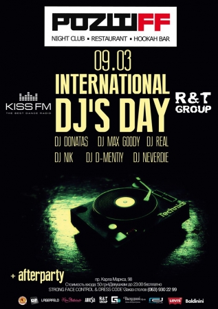 Події (Заходи) International Dj`s Day By Татьяна Иванова - 07.03.2013 00:00 0 10 Поділитися FacebookViberTelegramTwitterWhatsAppPinterestPrintEmail