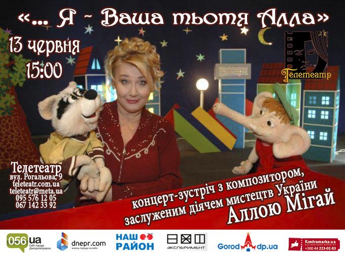 Шоу-програма заслуженного діяча мистецтв України, композитора, автора і ведучої Вечірньої казки АЛЛИ МІГАЙ.