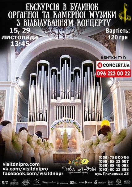 Є орган і в Дніпропетровську.Тож запрошуємо Вас на екскурсію до Будинку органної та камерної музики! Наш орган входить у десятку найкращих органів Європи.