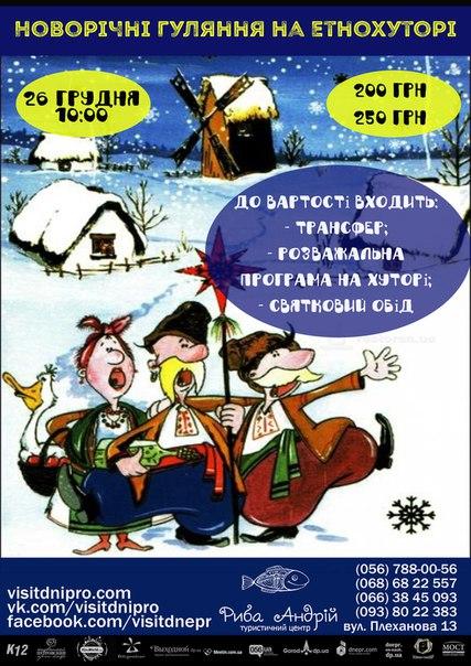 За кілометр до хутора нас зустрінуть козаки на конях, на подвірї господарі привітають хлібом-сіллю, познайомлять з українськими народними традиціями та побутом селян і козаків. Різноманітні ігри та конкурси, катання на конях, стрільба з луку це лише невелика частина того, що відбуватиметься на етно-хуторі 26 грудня.
