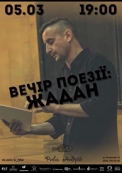 В нашому креативному просторі пройде вечір поезії, присвячений творчості Сергія Вікторовича Жадана.