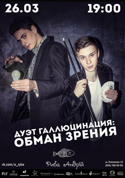 ДУЭТ ГАЛЛЮЦИНАЦИЯ дает возможность своим зрителям окунуться в абсолютно новый формат выступления. Магия на вытянутой руке, чтение мыслей, левитация, карты, платки, сигареты. Все это вас ждет на очередном магическом перфомансе.