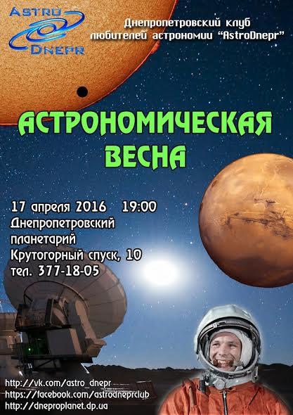 Нынешняя весна богата на астрономические события и памятные даты. Например, 12 апреля исполняется 55 лет с того дня, как первый в мире космонавт Юрий Гагарин облетел Землю на космическом корабле. Май особенно выделяется по количеству относительно редких астрономических событий. Именно в этом месяце произойдет противостояние Марса и прохождения Меркурия по диску Солнца.