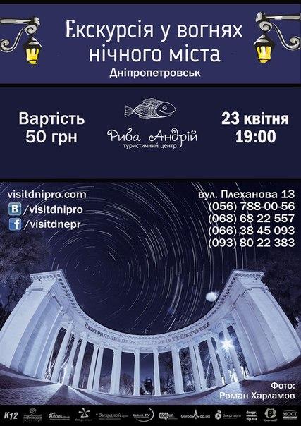 Минуле Дніпропетровська овіяне легендами та таємницями. Якщо ви хочете більше дізнатися про історію та архітектуру рідного міста запрошуємо на екскурсію У вогнях нічного міста! Ви побачите єдиний в Україні памятник кенгуру, унікальний зачарований будинок із жабами, почуєте факти та легенди, повязані з незвичними місцями Дніпропетровська.