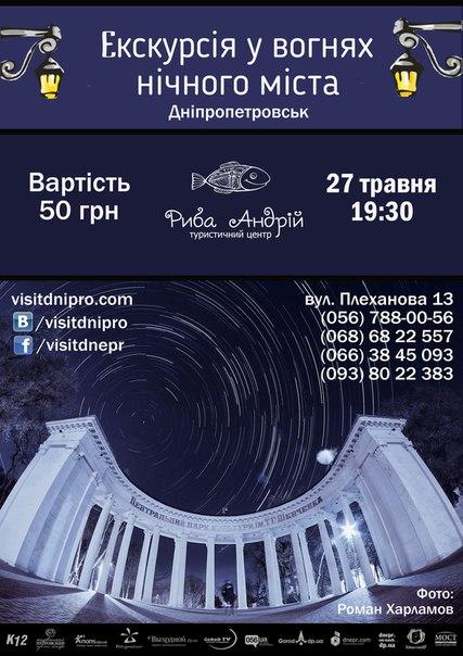 Минуле Дніпропетровська овіяне легендами та таємницями. Якщо ви хочете більше дізнатися про історію та архітектуру рідного міста запрошуємо на екскурсію У вогнях нічного міста! Ви побачите єдиний в Україні памятник кенгуру, унікальний зачарований будинок із жабами, почуєте факти та легенди, повязані з незвичними місцями Дніпропетровська.