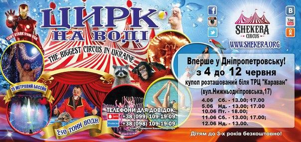 Внимание! Цирк Shekera с гастролями в городе – Днепропетровск! Только сейчас, только с 04 по 14 июня Днепропетровск впервые увидит настоящий цирк на воде. Так поспешите же увидеть это невероятное шоу и Вы!