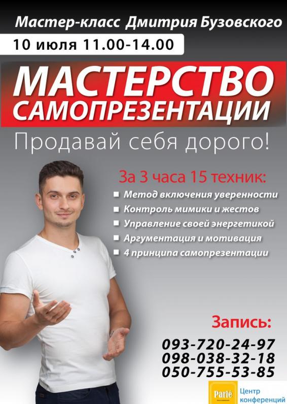 В Днепре новый мастер-класс Дмитрия Бузовского ‘Мастерство самопрезентации’.