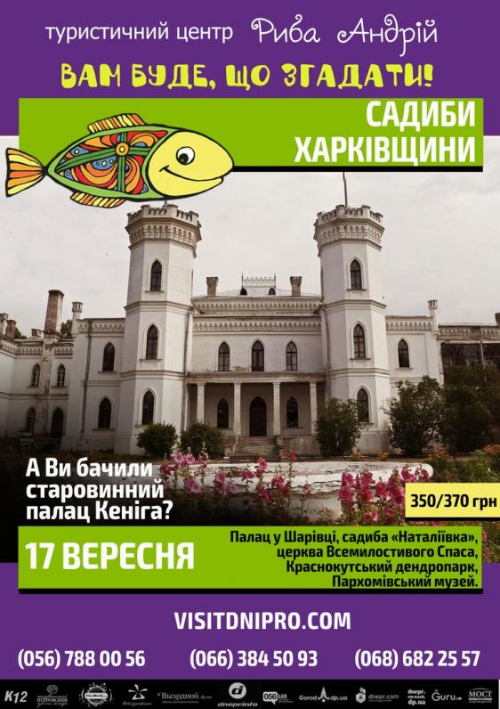 Ми побуваємо у палаці Кеніга, що у Шарівці, відвідаємо унікальний маєток Наталіївка, який ще називають перлиною Слобідської України. На території Наталіївки також завітаємо до церкви Всемилостивейшего Спаса, де зберігається унікальний хрест, що був вирубаний з каменю ще 900 років тому! А точна копія цієї церкви знаходиться в Ніцці (Франція).