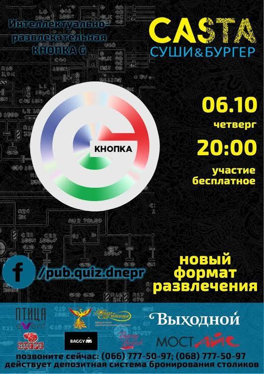 Викторина Кнопка G это простая, веселая и азартная игра, рассчитанная на большую и веселую компанию. Вопросы в викторине подобраны таким образом, что проявить себя в этой игре могут и интеллектуалы, и эрудиты, наблюдательные, находчивые, сообразительные, все!