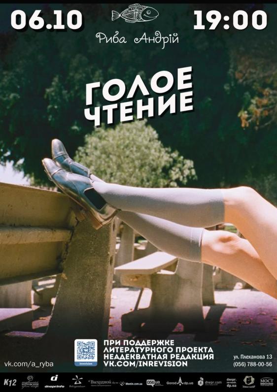 Первый выпуск ‘Голого чтения’ пройдет 6 октября в Рыбе Андрей в 19:00. Регистрация для всех желающих открыта в обсуждениях.