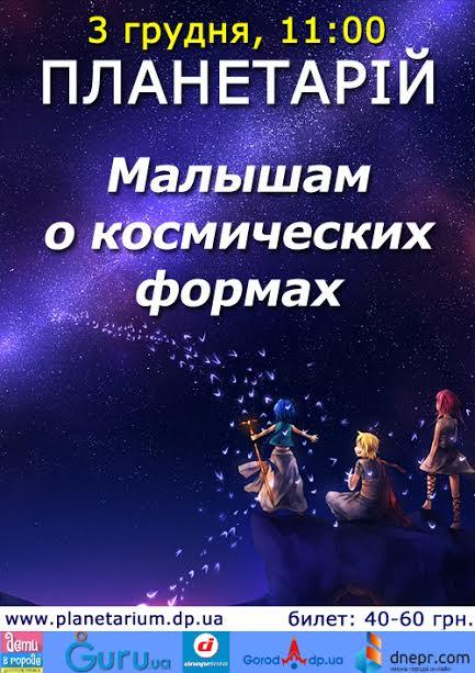 Наша Земля, круглая как мяч, или плоская, как блин? Данная программа о космических формах, является хорошим введением в астрономию для наших маленьких зрителей. В программе рассматриваются, различия между плоскими и круглыми объектами в пространстве. Программа Космические формы рассчитана на ребят дошкольного возраста. Программа разработана сотрудниками университета OttPlanetarium, США, штат Юта. Космические формы – это первая ступенька на пути знакомства детей с космосом и его объектами.