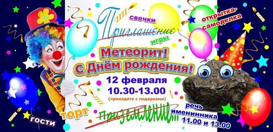 12 лютого з 10:30 до 13:00 Сіхоте-Алінський метеорит у Дніпровському Планетарії запрошує дітей та дорослих відсвяткувати свій 70-й День народження на Землі.