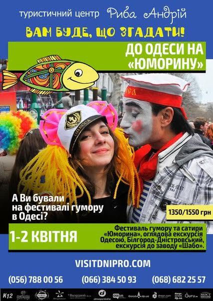 Ежегодно в День Смеха в Одессе проходит фестиваль юмора и сатиры Юморина. Карнавальное шествие, фестиваль клоунов и мимов, первоапрельские розыгрыши, шутки, а также просто море веселья ждут вас!