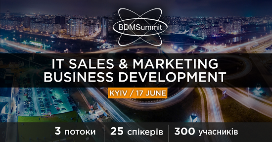 17 червня в Києві відбудеться конференція BDMSummit 2017 Summerдля sales-менеджерів, business development менеджерів та власників IT-аутсорсингових компаній. В події візьме участь близько 300 учасників та 25 спікерів, котрі досягли значних результатів в продажах та розвитку своїх IT компаній.