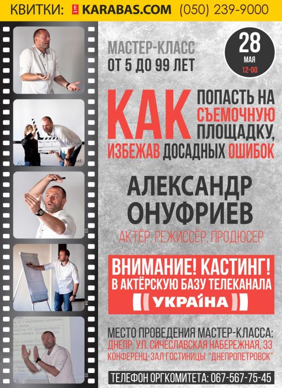 Мастер-класс Александра Онуфриева в Днепре, а так же кастинг в актерскую базу телеканала Украина!